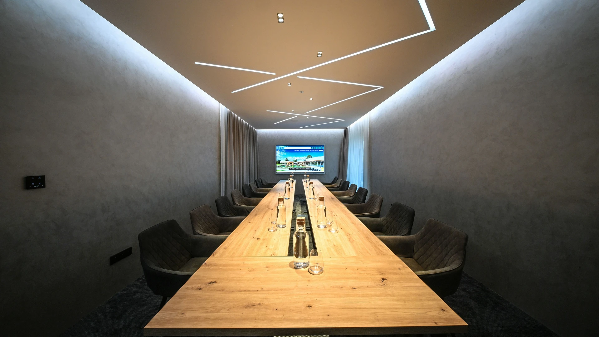 Meeting room with modern technical equipment. It provides facilities for corporate meetings, conferences, and workshops for up to 16 people.